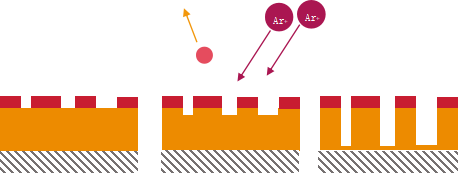 Ion energy controls the directionality of the reaction (vertical bombardment suppresses lateral reactions).